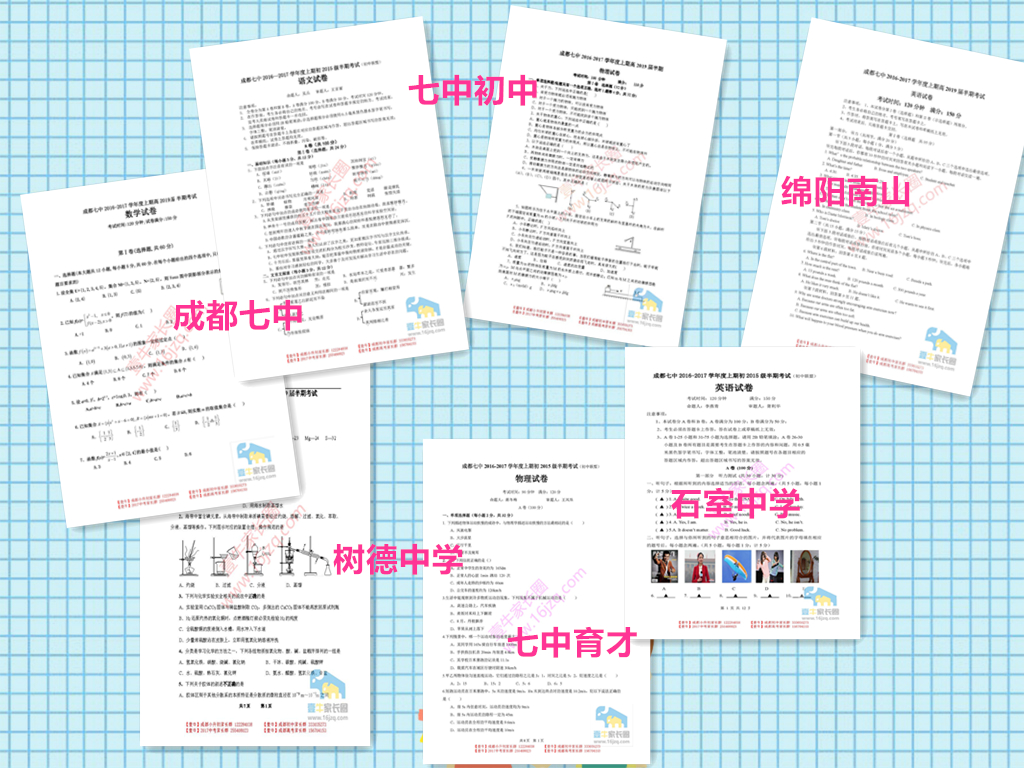 2016年秋季各年级期中考试已经或是即将举行,龙爸和微微妹早在10月初就开始陆续为各年级家长提供了最近两年各名校的期中考试真题试卷,放到壹牛家长圈龙爸论坛的“真题试卷”供大家下载练习。从上周起,成都七中(高中两校)、七中嘉祥外国语学校以及成都七中初中教育联盟(初中七校)等学校率先开始了2016年秋季期中考试,而龙爸也在第一时间收到了咱们圈内牛爸牛妈们分享的最新的2016-2017学年这些名校的期中考试试卷,而且都有答案!