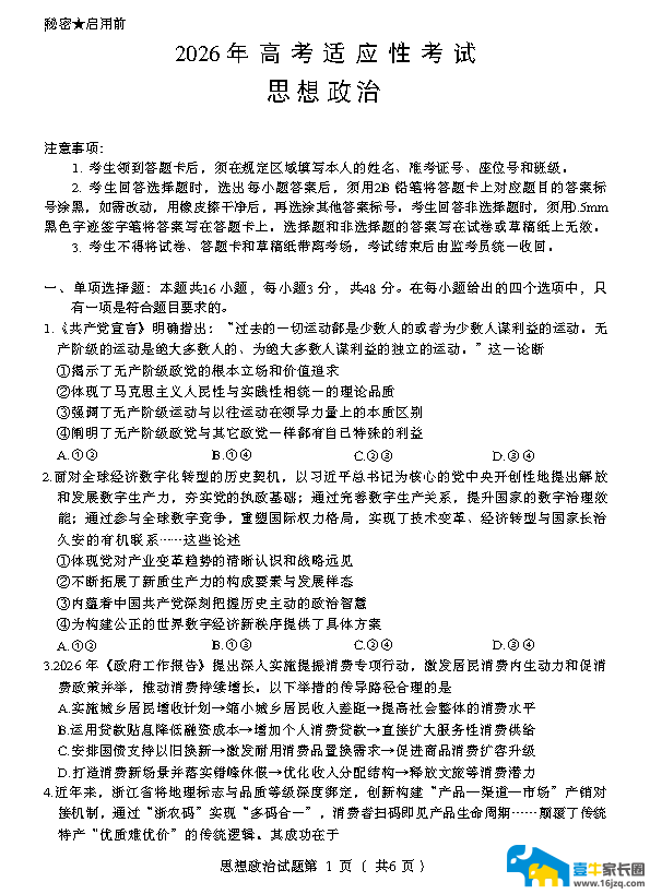 【限时免费下载】首发!绵阳市2026届高三高考适应性考试政治试卷+答案出炉! 感谢壹牛热心家长的分享,我们收到了绵阳市2026届高三高考适应性考试政治试卷,非常难得,现第一时间分享给咱们壹牛家长圈的家长朋友们 ...