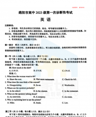 【限时免费下载】首发!绵阳市2026届高三一诊英