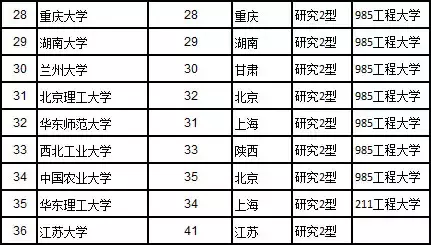 2017年36所研究型大学名单