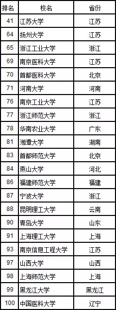 22所非211工程大学进入中国大学综合实力前100名