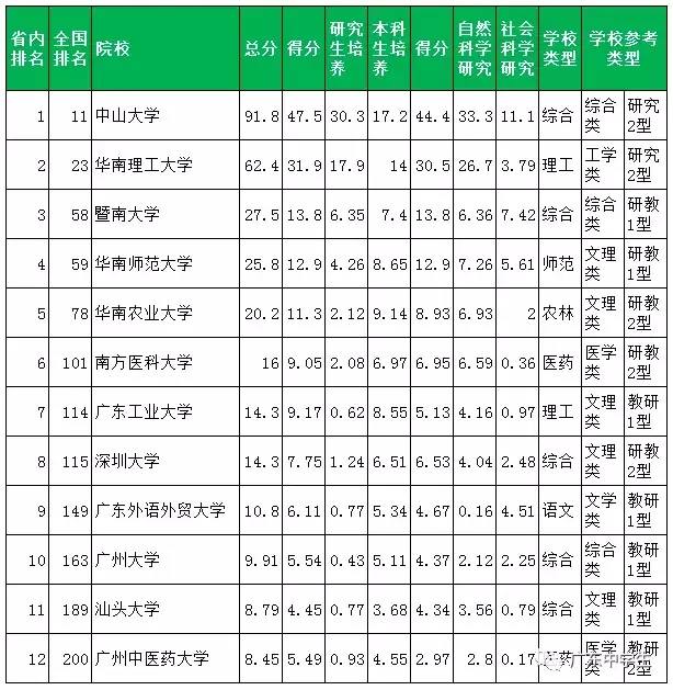 武书连2017中国大学综合实力排行榜(广东)