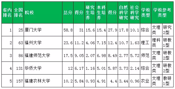 武书连2017中国大学综合实力排行榜(福建)