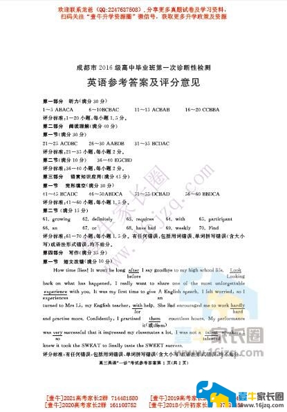 同时,英语听力部分已经上传到微信公众号“壹牛升学资源圈”回复关键字“一诊听力”就可以获取了!